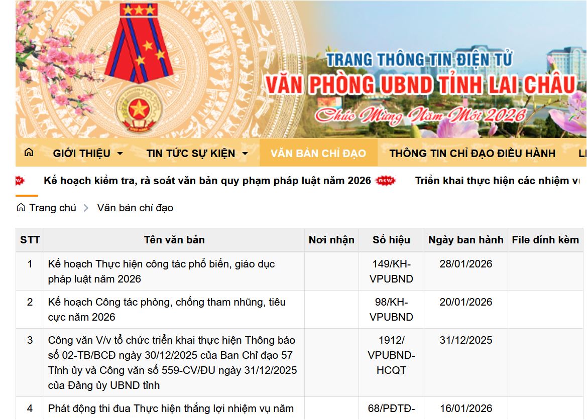 Hôm nay (28/1/2026), Văn phòng UBND tỉnh Lai Châu đã ban hành Kế hoạch số 152/KH-VPUBND về theo dõi tình hình thi hành văn bản quy phạm pháp luật năm 2026.
