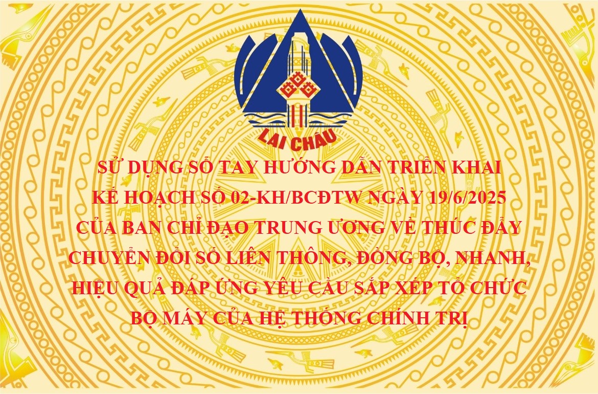 Ngày 31/7/2025, Văn phòng UBND tỉnh Lai Châu đã ban hành Công văn số 857/VPUBND-HCQT về việc sử dụng sổ tay hướng dẫn triển khai Kế hoạch số 02-KH/BCĐTW ngày 19/6/2025 của Ban Chỉ đạo Trung ương về thúc đẩy chuyển đổi số liên thông, đồng bộ, nhanh, hiệu quả đáp ứng yêu cầu sắp xếp tổ chức bộ máy của hệ thống chính trị.