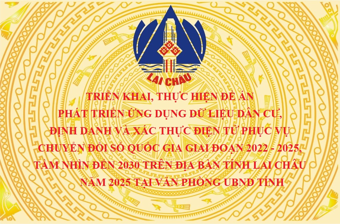 Ngày 5/3/2025, Văn phòng UBND tỉnh Lai Châu đã ban hành Kế hoạch số 181/KH-VPUBND triển khai, thực hiện Đề án phát triển ứng dụng dữ liệu dân cư, định danh và xác thực điện tử phục vụ chuyển đổi số quốc gia giai đoạn 2022 - 2025, tầm nhìn đến 2030 trên địa bàn tỉnh Lai Châu năm 2025 tại Văn phòng UBND tỉnh.