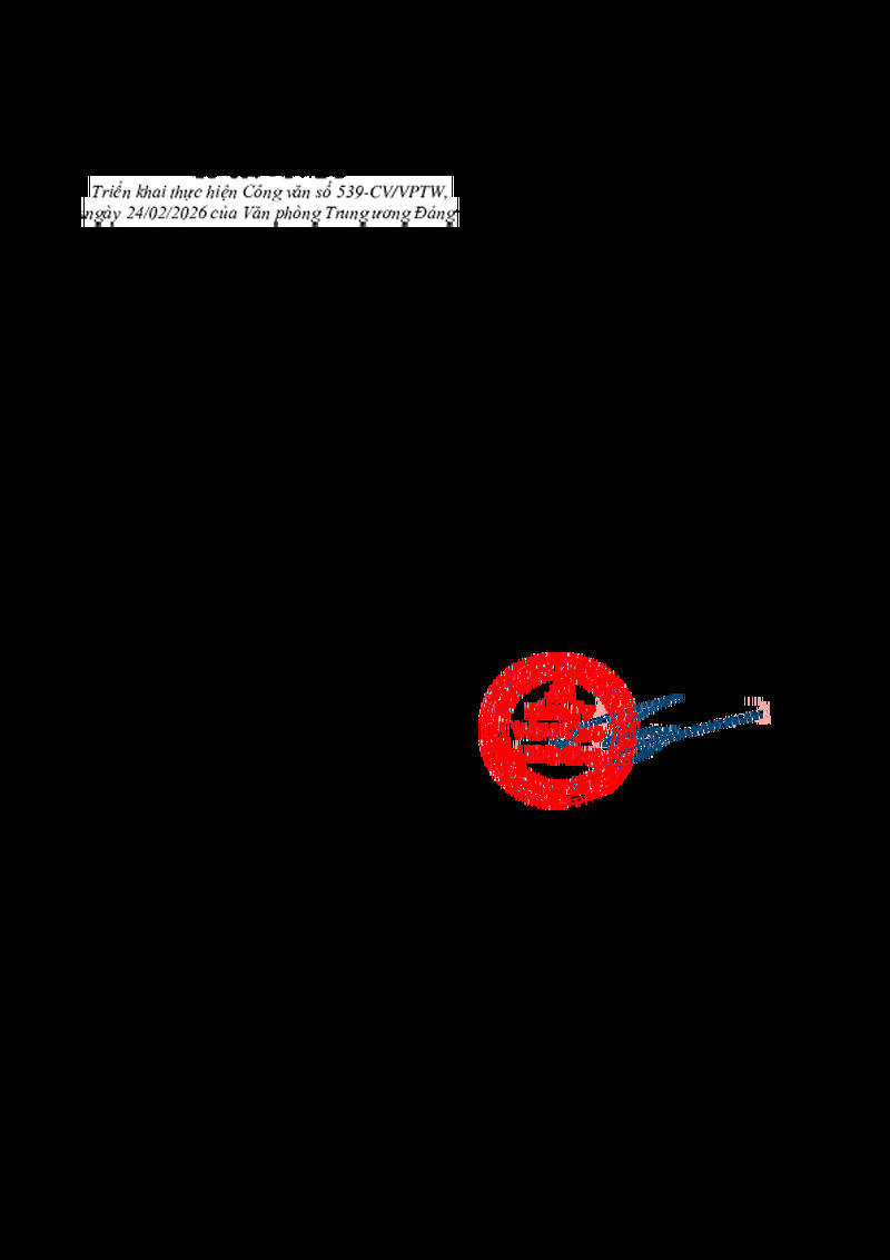 | Tiêu đề văn bản | Công văn Triển khai thực hiện Công văn số 539-CV/VPTW, ngày 24/02/2026 của Văn phòng Trung ương Đảng | ||